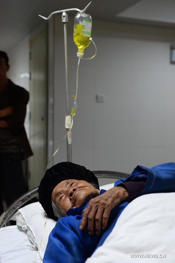 An injured victim receives medical treatment at Ludian people's hospital, in Ludian County of Zhaotong City in southwest China's Yunnan Province, Aug. 3, 2014. At least 367 people have been killed and more than 1,800 injured after a 6.5-magnitude earthquake rattled southwest China's Yunnan Province Sunday afternoon, rescuers said. (Xinhua/Hu Chao)