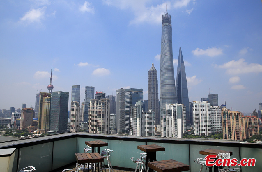 The final steel beam was installed on Shanghai's tallest building on Sunday, August 3, 2014, with the skyscraper reaching is designed height of 632 meters. The 137-story Shanghai Tower in Lujiazui financial and trade zone in the city's Pudong New Area is expected to open in the middle of next year. The landmark building will include offices, commercial space, a five-star hotel, exhibition and conference halls and recreational facilities. (China News Service/Pan Suofei)