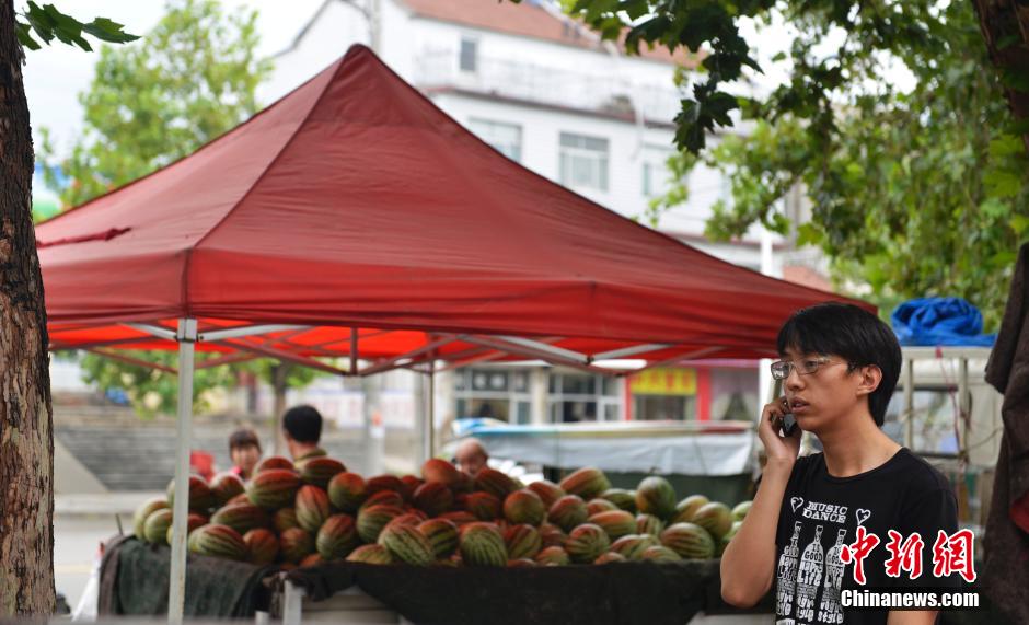 Zhao replies to customers on WeChat in his home in Zouping county, east China's Shandong province, July 29, 2014. (CNS Photo)