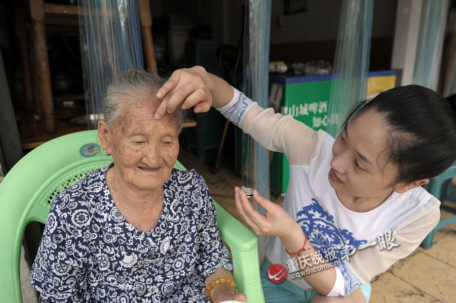 Huang Lihua, a post-90s girl, goes to work with her 88-year-old grandma, July 17, 2014. (Photo/cqwb.com.cn)