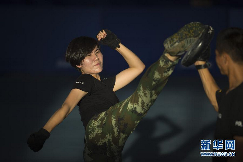 Wang Qiongyu conducts combat training on July 28, 2014. (Xinhua)
