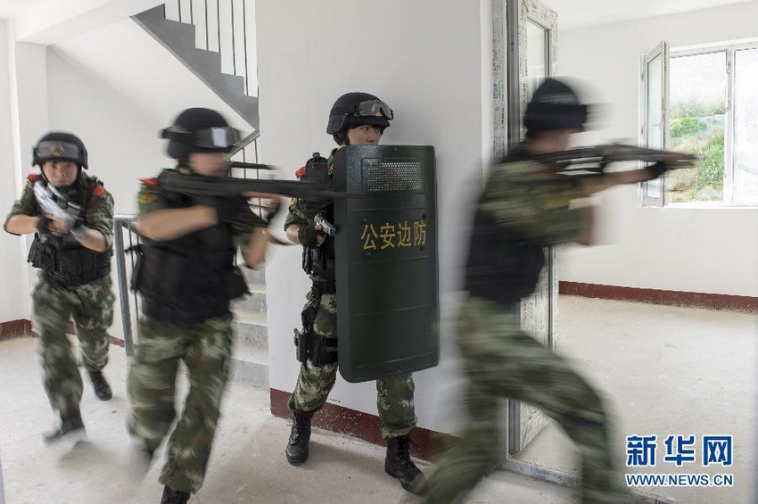 | Li Mengxuan (second from right) and other team members conduct group tactical training on July 29, 2014. (Xinhua) |