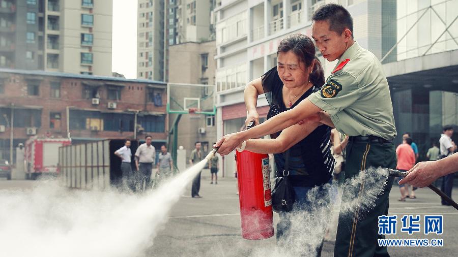 Chen Jihang conducts fire fighting campaign. (Xinhua/Wang Xin)
