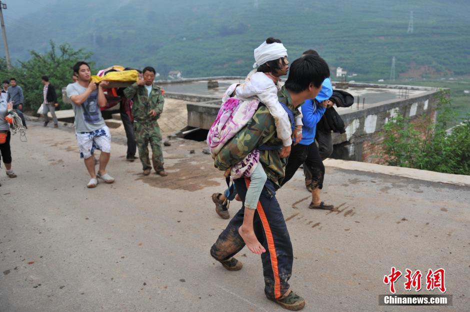 Villagers help each other in the quake zone on August 4, 2014. (Chinanews/Ren Dong)