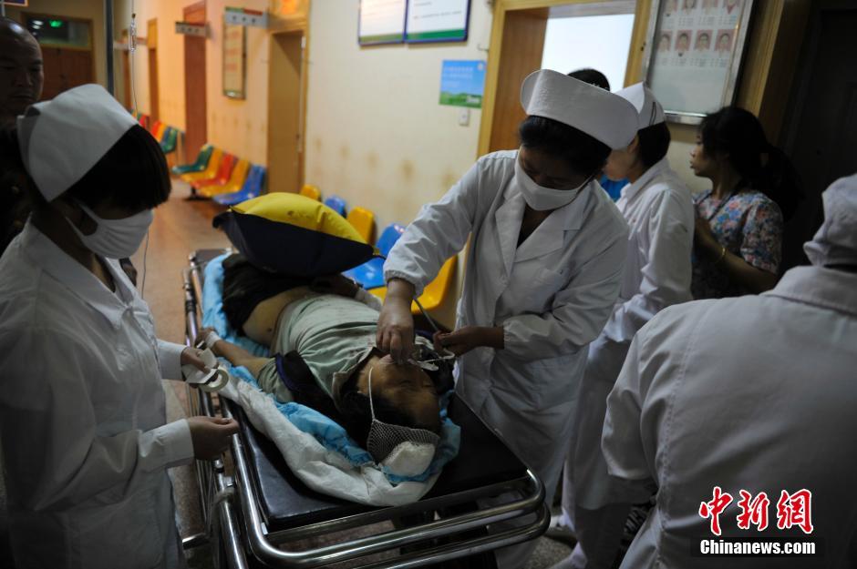 The wounded is treated in hospital on August 4, 2014. (Chinanews/Liu Ranyang)