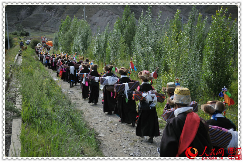 “Ongkor” in Tibetan means marching around the farm land. With a history of more than 1500 years, it is a traditional celebration of good harvest. The photo shows the Ongkor Festival celebrations in Zhanang County, Shannan Prefecture of Tibet. (People.cn)
