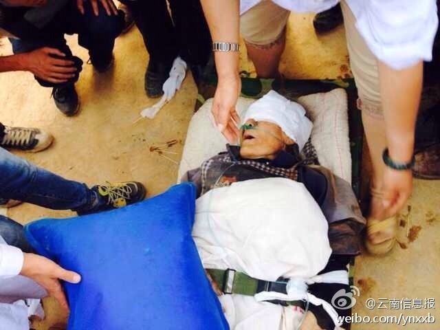 The old woman is eventually rescued at 6:41 p.m. on August 5, 2014. (Photo/ynxxb.com)