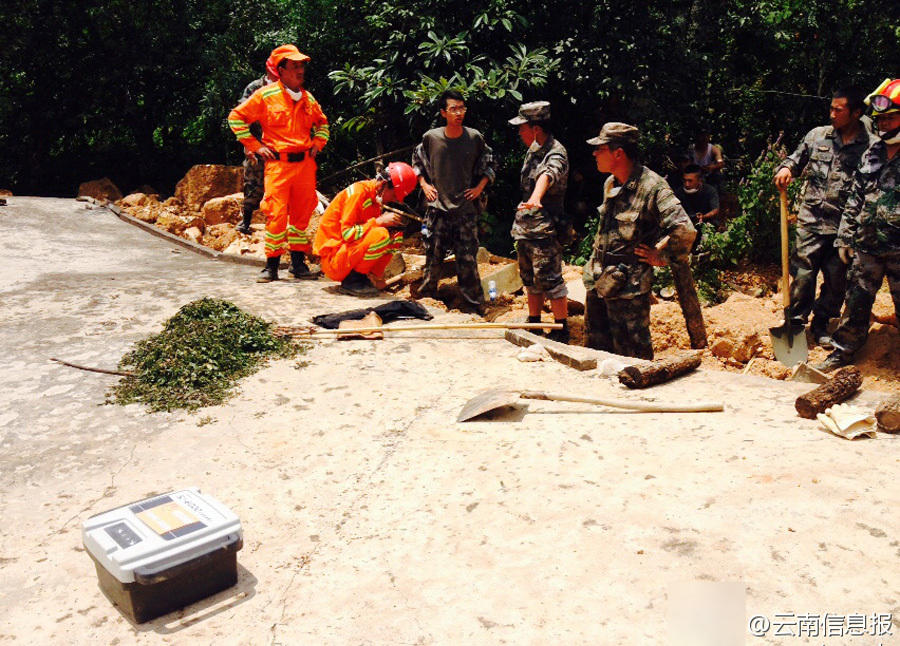 The rescuers come to the scene and found the old woman still alive after she has been buried for 44 hours at 1:41 p.m. on August 5, 2014. (Photo/ynxxb.com)