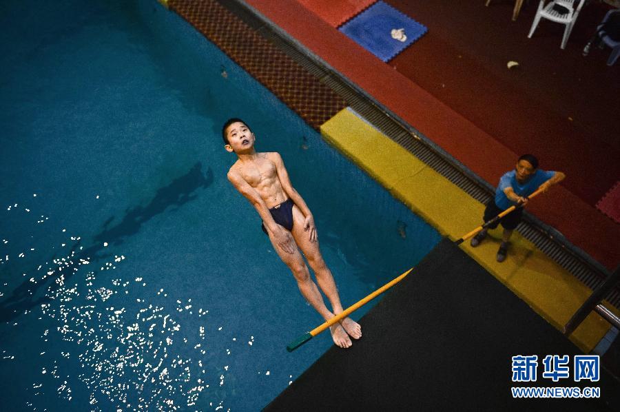 Coach Hu Qijun trains Peng Yueming with a pole on July 26th. (Xinhua/Zhang Rui)