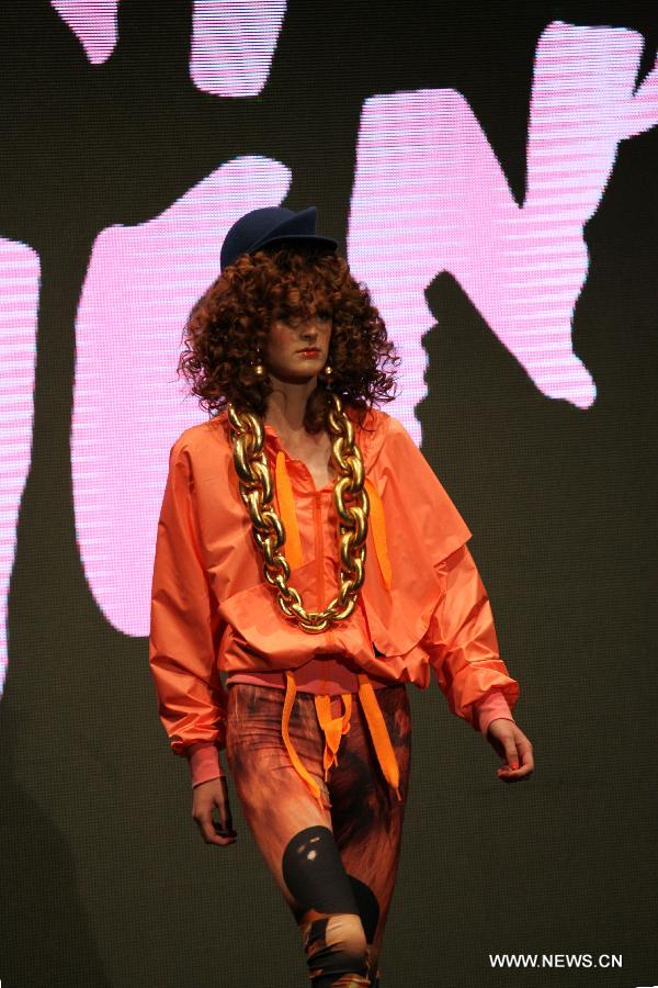 A model presents a creation by Danish Designer Nicholas Nybro during the ongoing Copenhagen Fashion Week in Copenhagen, Denmark, Aug.7, 2014. (Xinhua/Wu Bo)