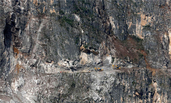 Rescuers rushed to repair the road to the barrier lake in Niulan Jiang Canyon(Photo/KJ.81.CN)