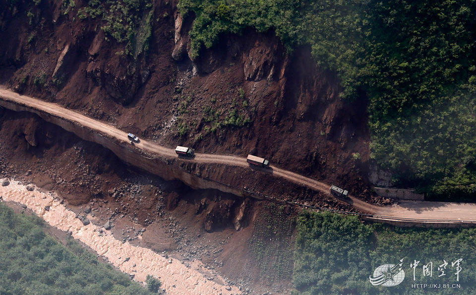Helicopters were dispatched for aerial reconnaissance by the earthquake relief command post of the air force on the morning of August 5, 2014. Flying across Niulan Jiang Canyon, the helicopters took aerial shots that showed the water constantly rising in the barrier lake, offering scientific basis for effective organization of earthquake relief.