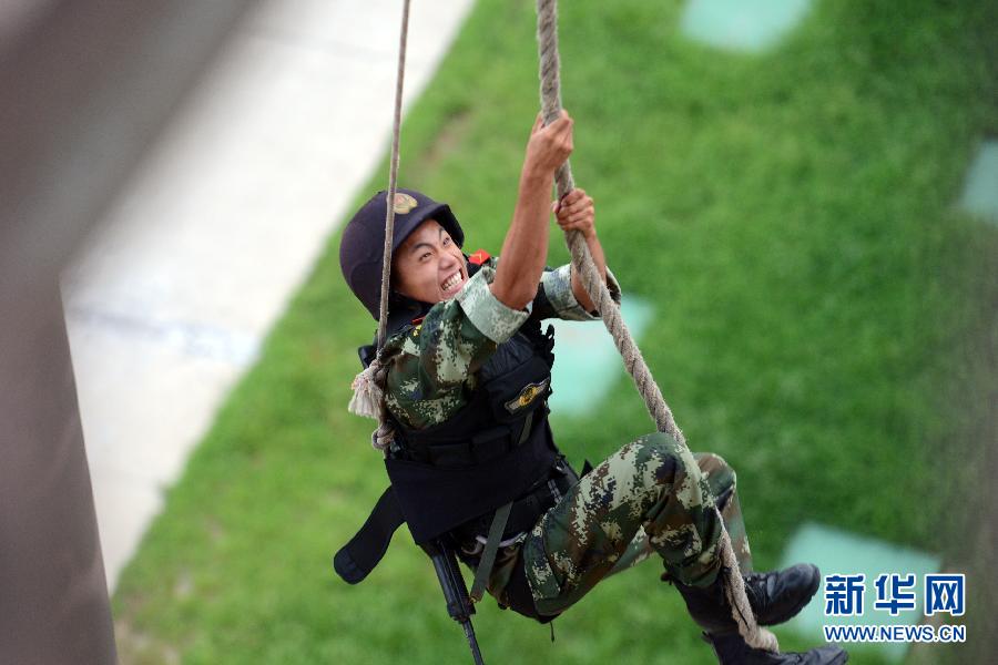 The armed soldiers forge their skills of unarmed strike in the heat.(Xinhua/Li Ke)