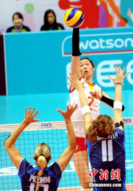 China beats Italy 3-1 in the game and won all three matches, then won the championship on August 10, 2014. (CNS/Tan Daming)