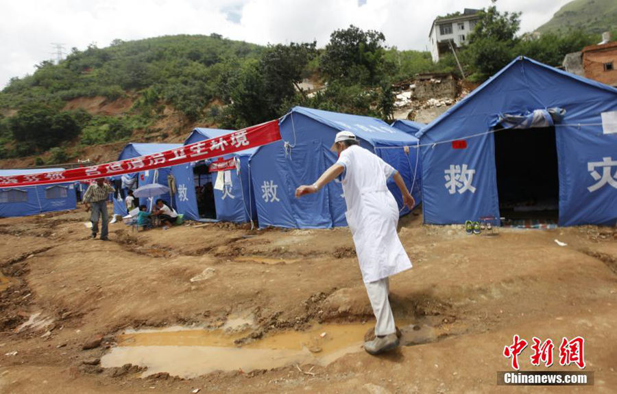 Wu Dianhua, an 80-year-old president of Jizhou Workers’ Hospital in Hebei Province, has led a medical team to help treating people in the Ludian earthquake stricken area, Aug. 10, 2014.