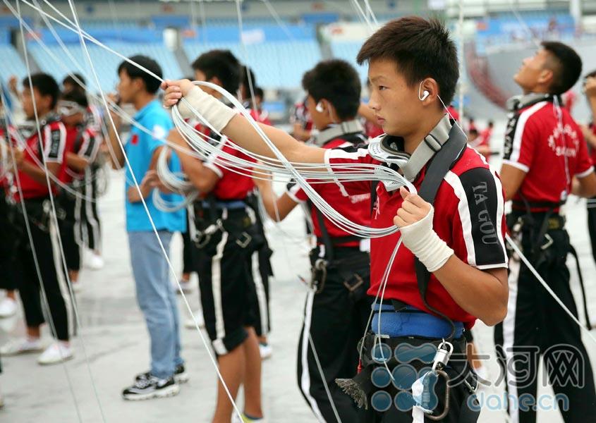 Students rehearse for the opening ceremony. (Dahe.cn/Feng Weifeng)