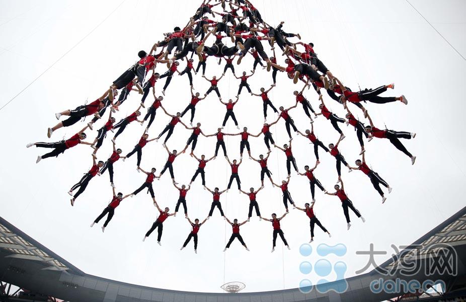 Students rehearse for the opening ceremony. (Dahe.cn/Feng Weifeng)