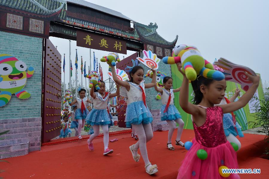 Children perfom during the opening ceremony of the Youth Olympic village ahead of the Youth Olympic Games in Nanjing, capital of east China's Jiangsu Province, Aug, 12, 2014. The Nanjing 2014 Youth Olympic games will be held from August 16 to 28. (Xinhua/Shen Peng)