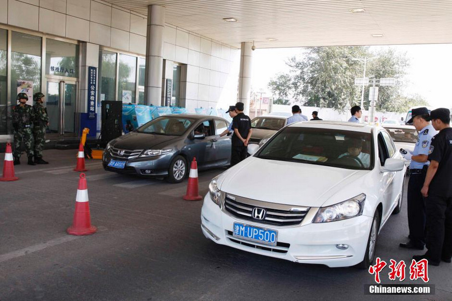 Beijing police authorities performed security checks on various vehicles entering the capital city on August 12, 2014. Since August 1, Beijing has tightened security for the Asia-Pacific Economic Cooperation (APEC) 2014 Third Senior Officials' Meeting (SOM3) and Related Meetings, which will be held in the city between August 6 and 21. (Photo/Chinanews.com)