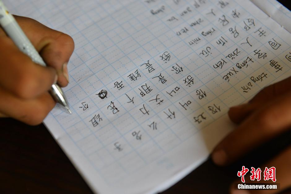 Students learn to write Chinese characters. (Chinanews/Du Zhao)