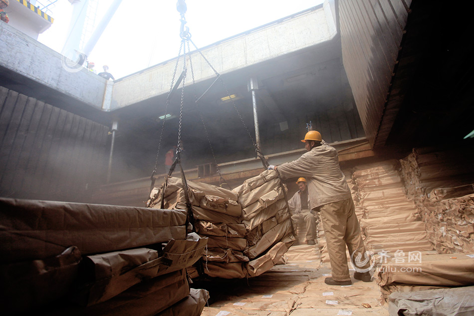 A worker directs the driver in the crane to transport frozen fish. (Iqilu/Sun Zhiwen)
