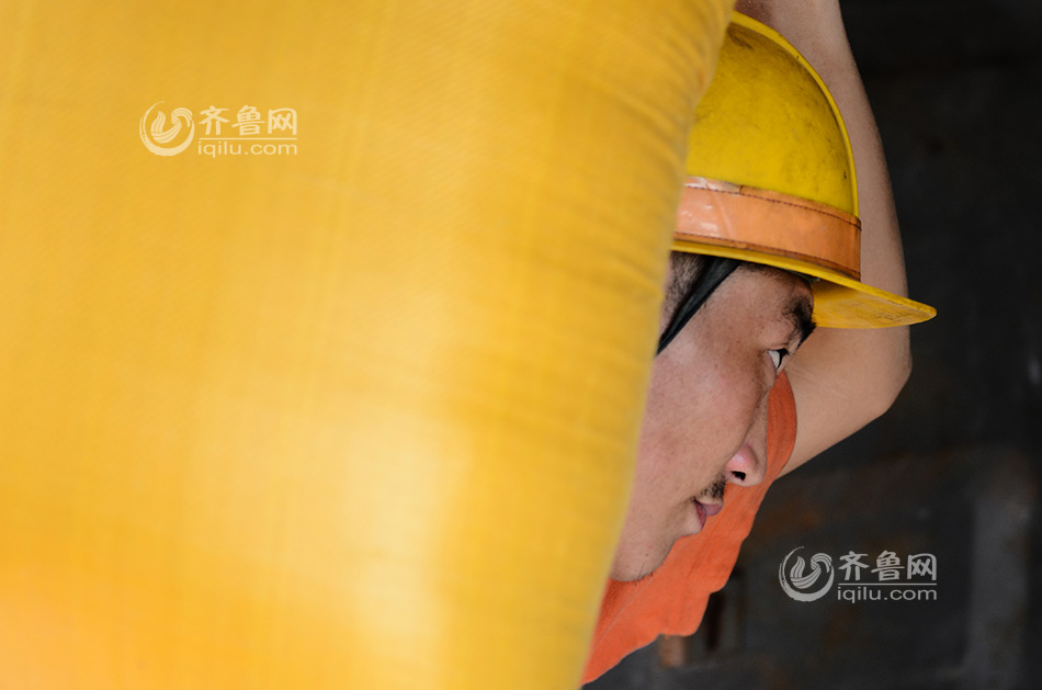 Workers have to carry the bean pulps onto the truck under such a high temperature. (Iqilu/Sun Zhiwen)