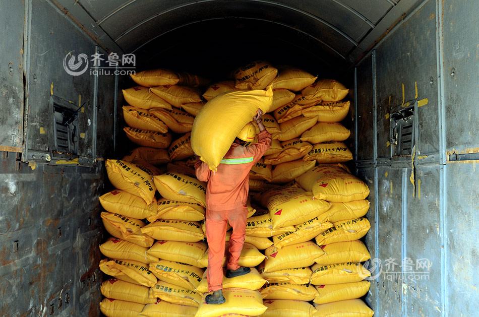 A worker carries a bag of bean pulps and puts them in order. (Iqilu/Sun Zhiwen)
