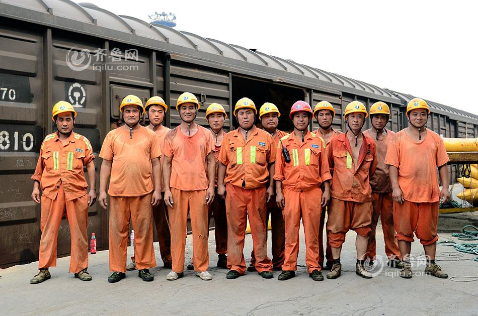 A group photo of workers carrying bean pulps bags. (Iqilu/Sun Zhiwen)