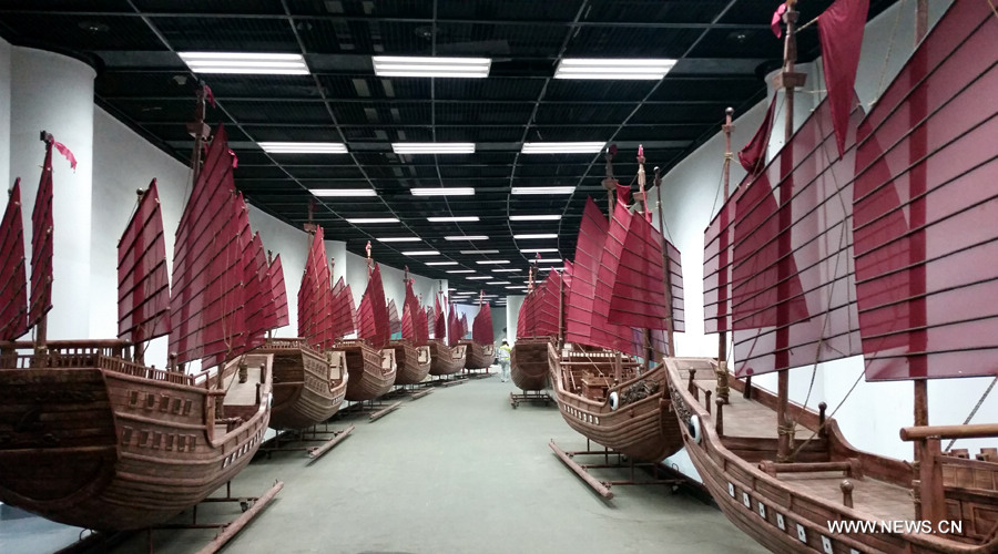 Photo taken on August 16, 2014 shows the props for the rehearsal of Youth Olympic Games (YOG) in Nanjing Olympic Sports Center. The opening ceremony of YOG will start at 8:00 pm on August 16, 2014. (Xinhuanet/Wang Hanlin)