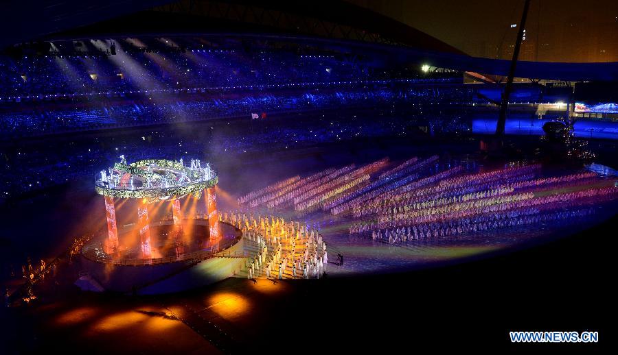 Artists perform during the opening ceremony for Nanjing 2014 Summer Youth Olympic Games in Nanjing, capital of east China's Jiangsu Province, Aug. 16, 2014. (Xinhua/Yang Shiyao)