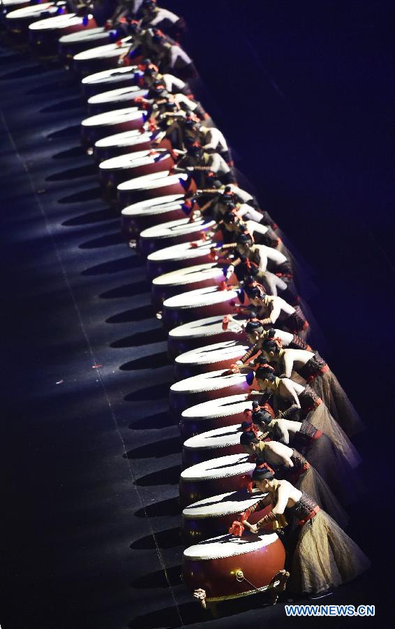 Artists perform during the Opening Ceremony of the Nanjing 2014 Youth Olympic Games in Nanjing, capital of east China's Jiangsu Province. (Xinhua/Ou Dongqu)