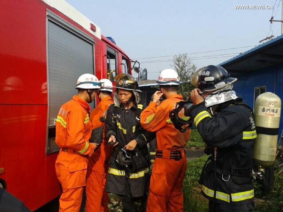 Photo taken with a mobile phone shows rescuers at the accident site after gas outburst occurred in Dongfang Coal Mine in Xiejiaji istrict of Huainan City, east China's Anhui Province, Aug. 19, 2014. More than 20 people have been missing in the accident which happened in the early morning on Tuesday. (Xinhua)