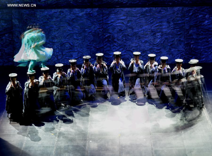 Artists perform at a show, part of the special celebration of 2014 China-ASEAN cultural exchange year in Jakarta, Indonesia, Aug. 18, 2014. The special celebration of the 2014 China-ASEAN cultural exchange year in Indonesia is organized by Chinese Ministry of Culture and expected to conclude its performance on Friday. (Xinhua/He Changshan)