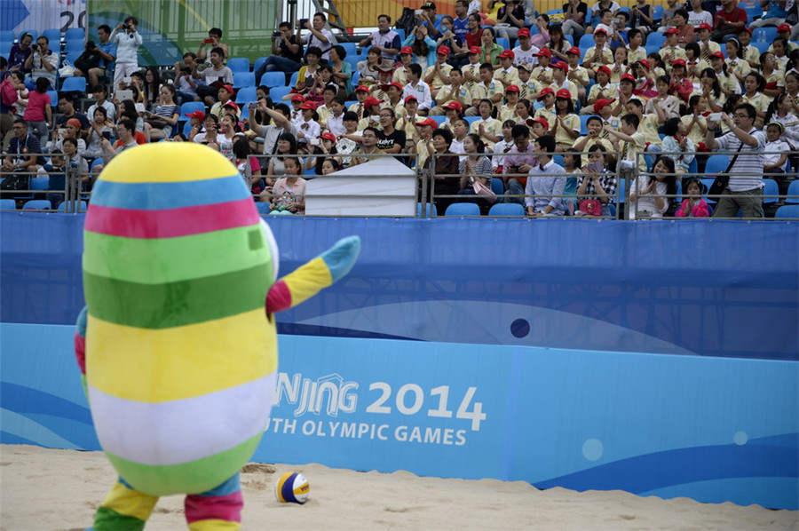 A “mascot” puts on its performance. (Xinhua/Ju Huanzong)