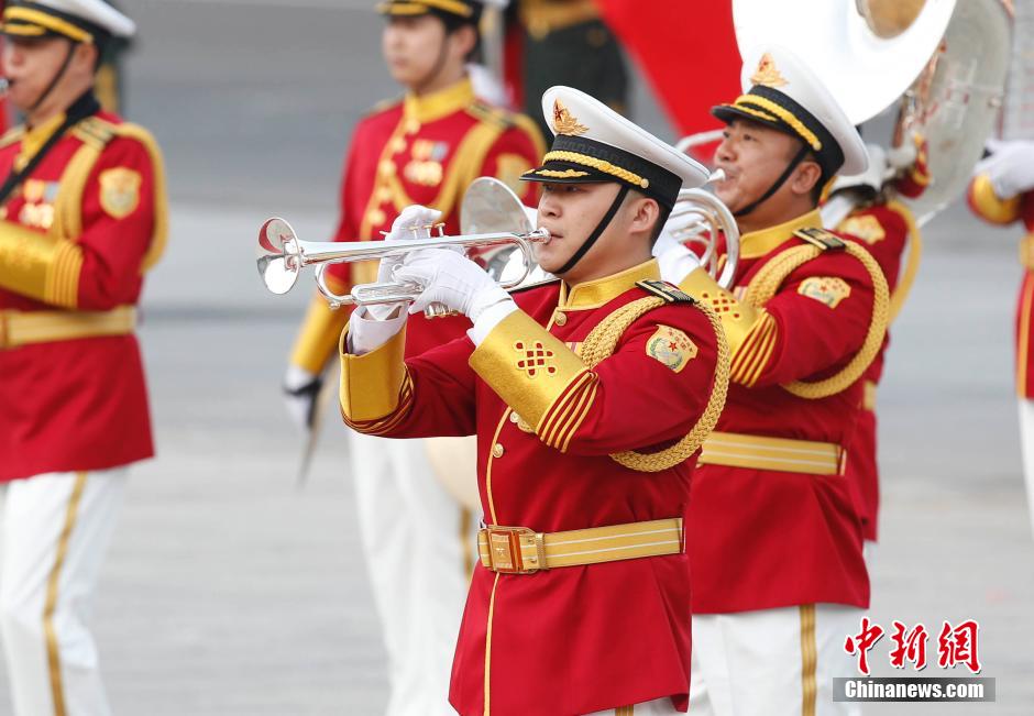 The military band of the PLA performs at the welcome ceremony attended by President Xi Jinping and visiting Uzbek President Islam Karimov on Aug. 19, 2014. (CNS/Du Yang)