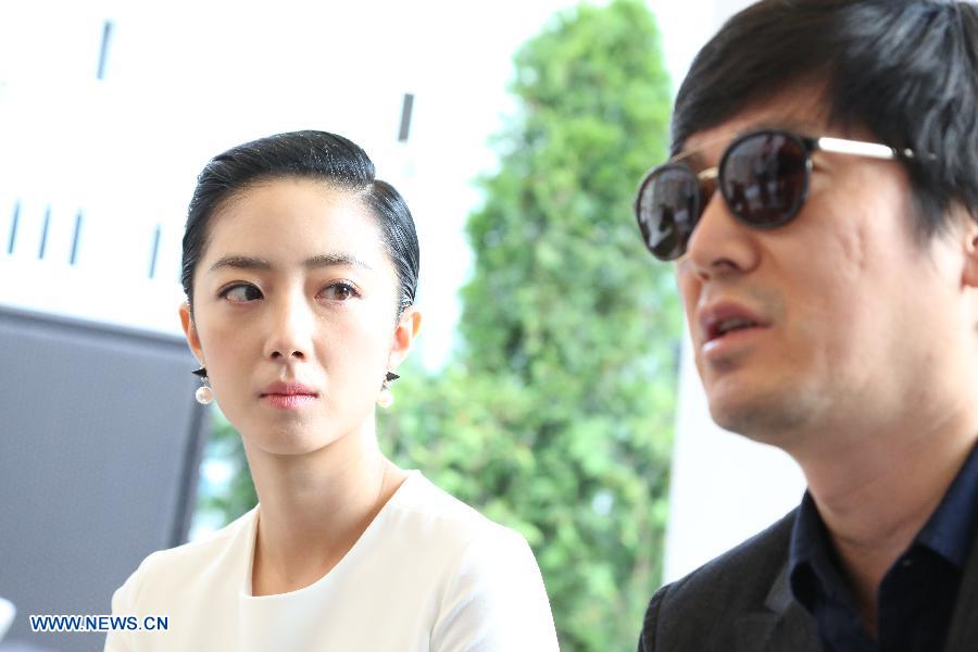 Chinese director Diao Yinan (R) and actress Kwai Lun-mei attend an interview with Xinhua News Agency in Sarajevo, Bosnia and Herzegovina, on Aug. 20, 2014. "Black Coal, Thin Ice", a Berlin Gold Bear winner, is in open air program in the ongoing 20th Sarajevo Film Festival. (Xinhua/Haris Memija)