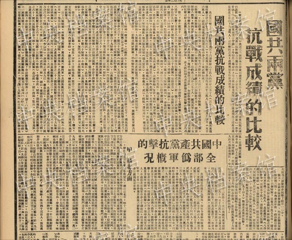 | The CPC published the comparison of military feats between the Kuomintang and the CPC and the military feats of the Eighth Route Army and the New Fourth Army over six years of resistance against Japanese aggression on July 23, 1943. (Photo/China's State Archives Administration) |