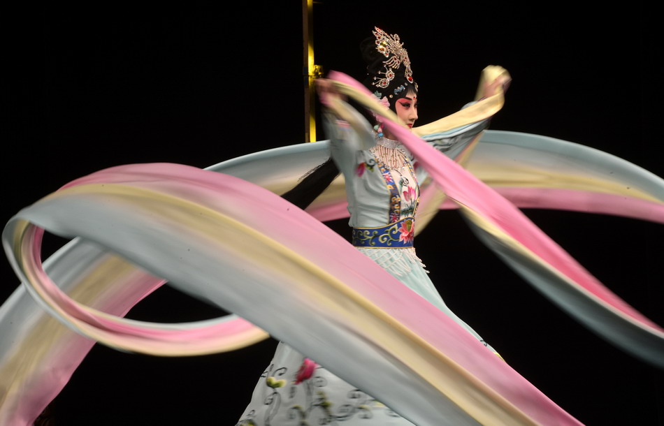 Actress Dou Xiaoxuan performs Beijing Opera "The Goddess Scatters Flowers" during a preview for media at Lincoln Center in New York City.(Xinhua/Wang Lei)