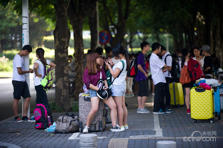 More than a hundred of university students gather in the North Central Avenue in Shenzhen on July 5, 2014, waiting to receive a part of their return fare. They all came from Guangxi Normal University and Guilin University of Technology to find a summer job. Finally they found what the employment agency in Shenzhen had promised was not true. Police got involved in the affair. The employment agency was asked to refund the transport fare to the students. (Photo/CNTV)