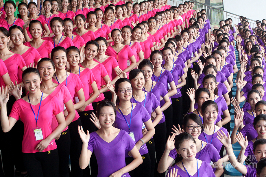 On July 13, 2014, 400 volunteers from 18 universities receive training for the Youth Olympic Game to be held in Nanjing in August. (Photo/CNTV)