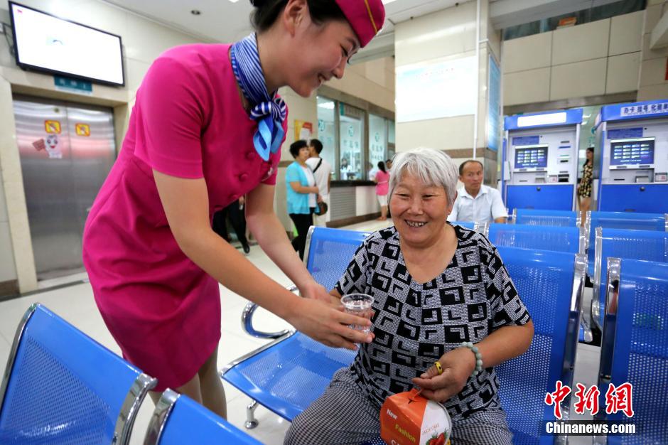 Nurses dressed in stewardess costumes serve the patients in Zhengzhou First People's Hospital, Aug. 24, 2014. (Chinanews/Yang Zhenghua)