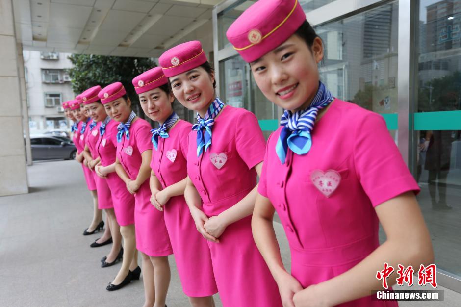 The First People's Hospital in Zhengzhou has started a new "airline model" to serve the patients on Aug. 24, 2014. The service team is composed of 20 beautiful nurses who are dressed in stewardess costumes. They will offer guiding services, introduce treatment processes, escort patients in critical conditions etc.