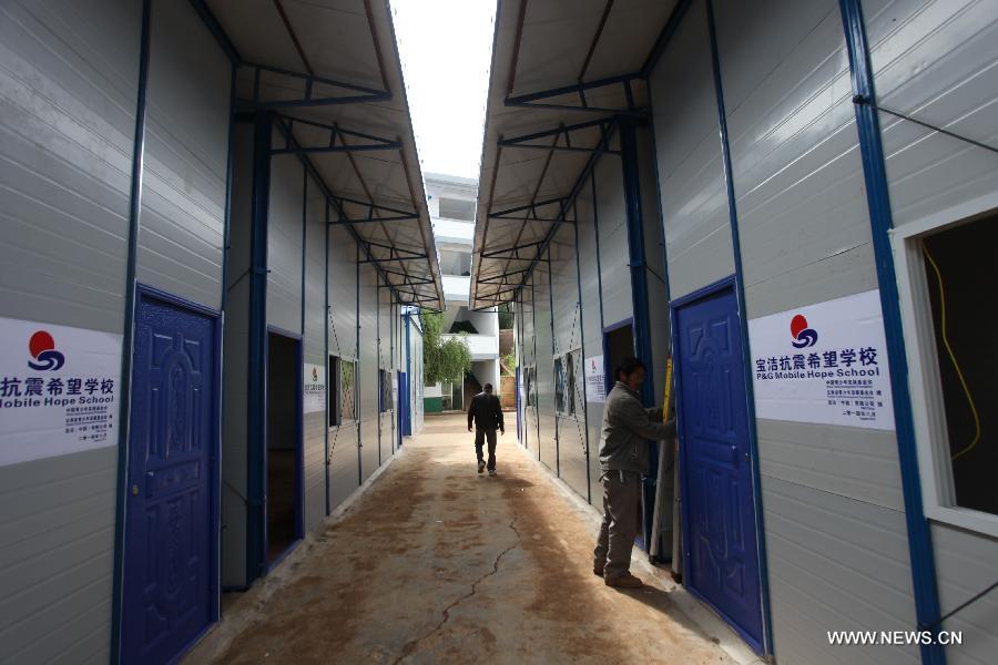Mobile classrooms set up in quake-hit Yunnan (3)