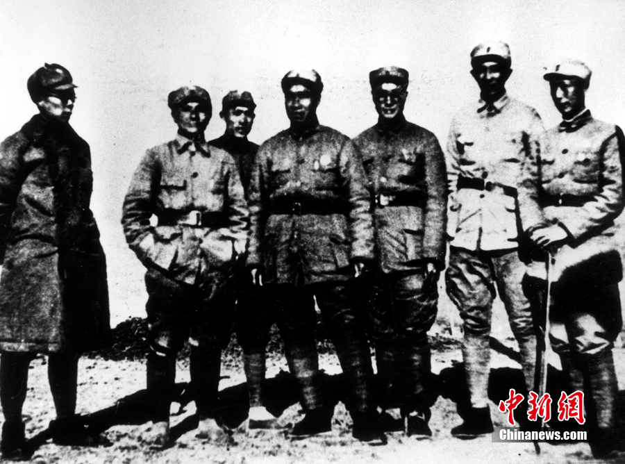 Zhu De, Liu Bocheng, Deng Xiaoping (second from left), Nie Rongzhen Luo Ruiqing and other Eighth Route Army leaders in August 1937. (Photo/CNS)