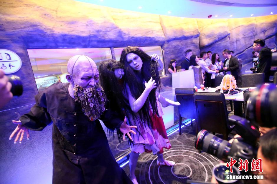 Hong Kong Ocean Park's Halloween Fest 2014 will be opened on Nov. 2, 2014. This year the Fest adds Houses and over a dozen Halloween Bash shows exhibiting some of the best in the fright industry for some heavy-duty horror. You can go there to experience the terrifying Halloween. (Chinanews.com/Hong Shaokui)