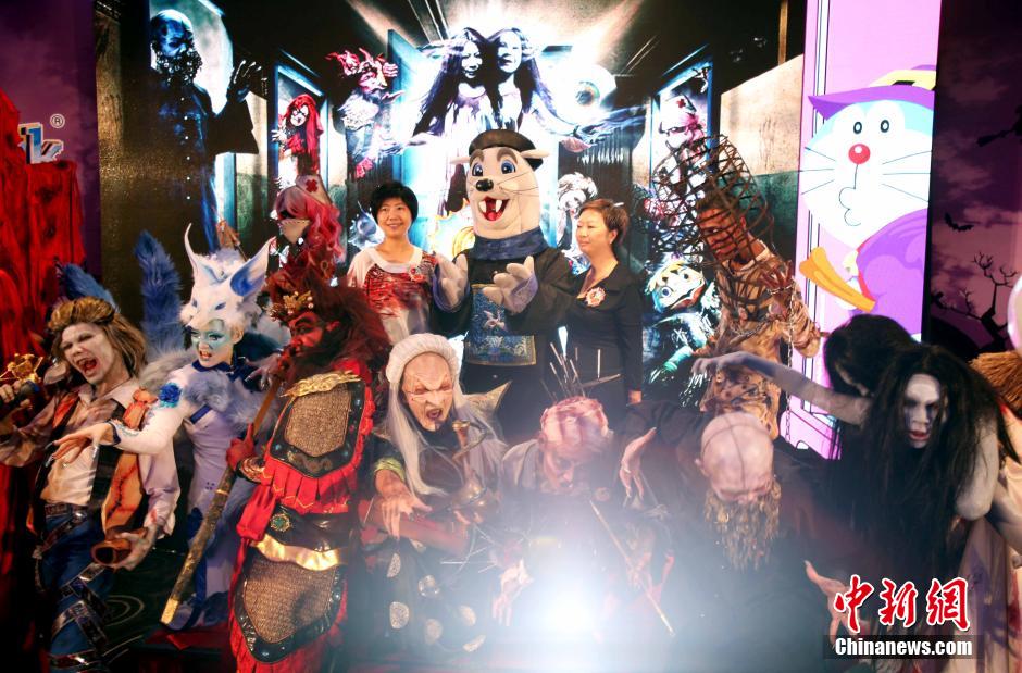 | Hong Kong Ocean Park's Halloween Fest 2014 will be opened on Nov. 2, 2014. This year the Fest adds Houses and over a dozen Halloween Bash shows exhibiting some of the best in the fright industry for some heavy-duty horror. You can go there to experience the terrifying Halloween. (Chinanews.com/Hong Shaokui) |