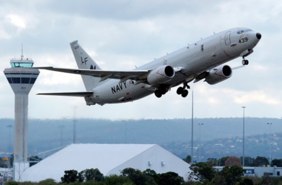 | A US Navy P-8 Poseidon aircraft takes off from Perth International Airport in this April 16, 2014 file photo.[Photo/Agencies] |