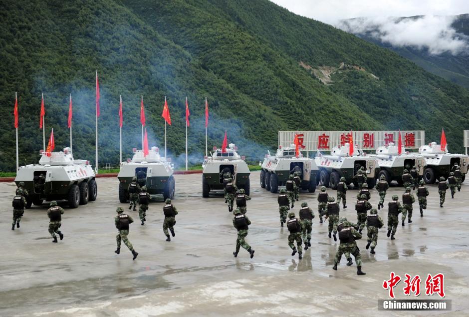 Armed police get on their cars rapidly. (CNS/Liu Zhongjun)