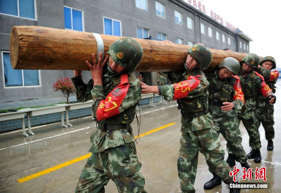 Armed police bear heavy burdens. (CNS/Liu Zhongjun)