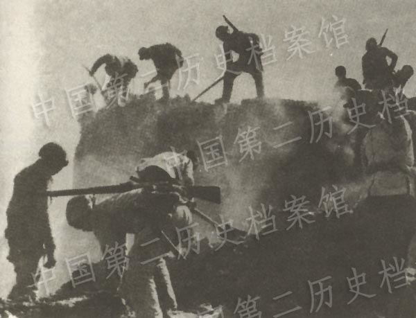 Demolition of the Japanese blockhouse. (Photo/Second Historical Archives of China)